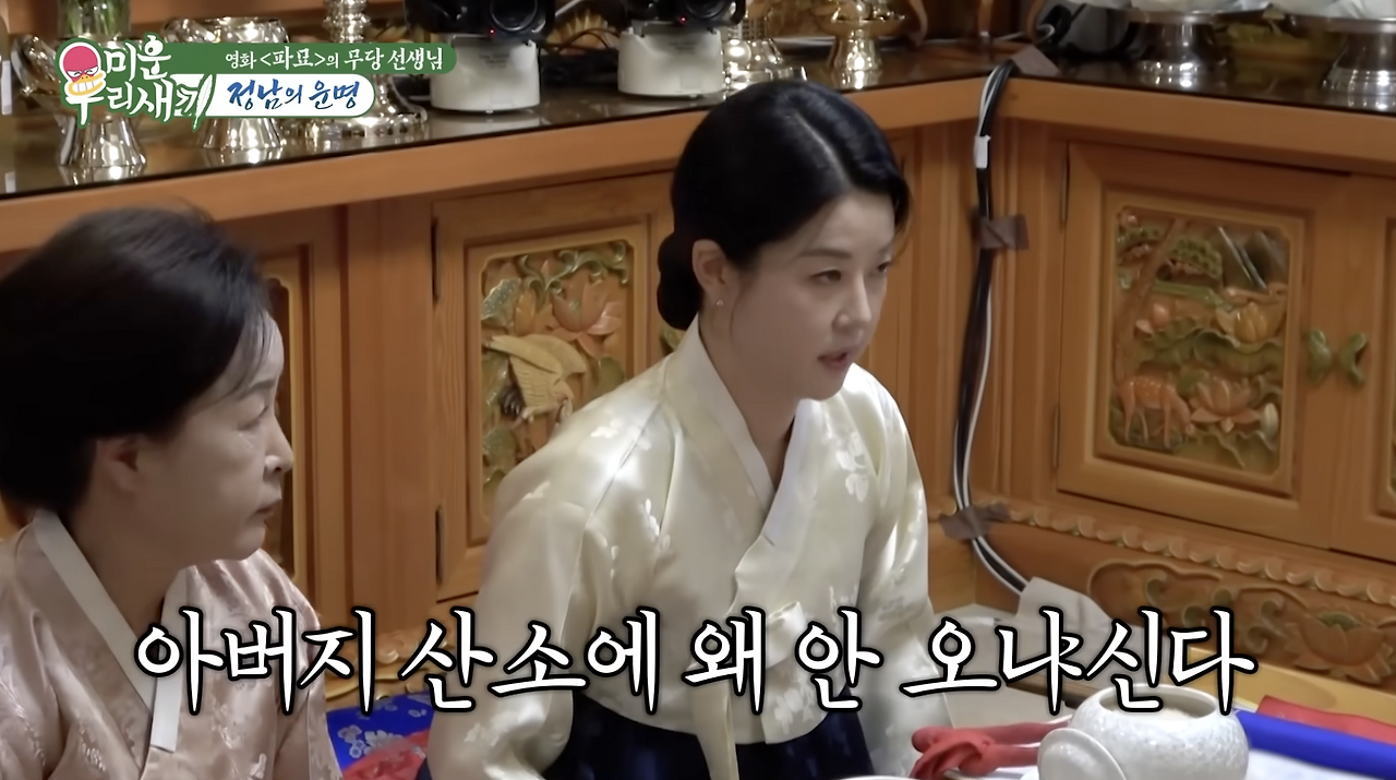 두 분이 방문한 곳은 바로 천만 관객 영화 '파묘'의 자문위원으로도 유명한 무속인 신당이었어요. 방송에서 두 분의 깊은 사주 이야기와 진심 어린 상담이 많은 시청자들의 마음을 움직였죠. 저도 보면서 깜짝 놀랐답니다!